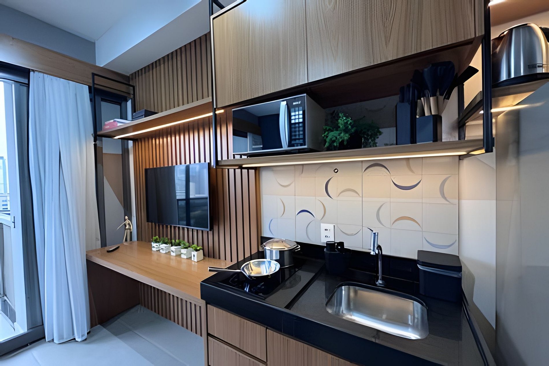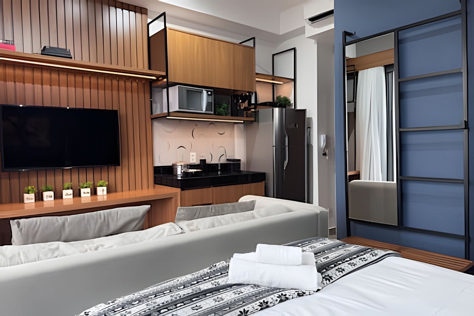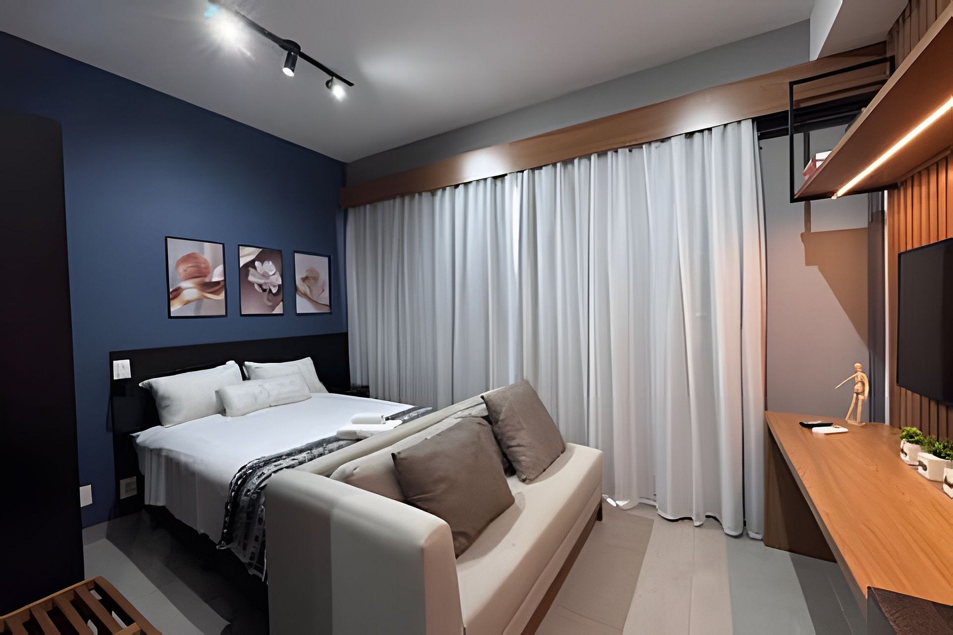 A unidade administrada por nossa equipe oferece um ambiente moderno, funcional e acolhedor. Com 28 m² bem distribuídos, é ideal para viajantes solo, casais ou famílias de até 3 pessoas.