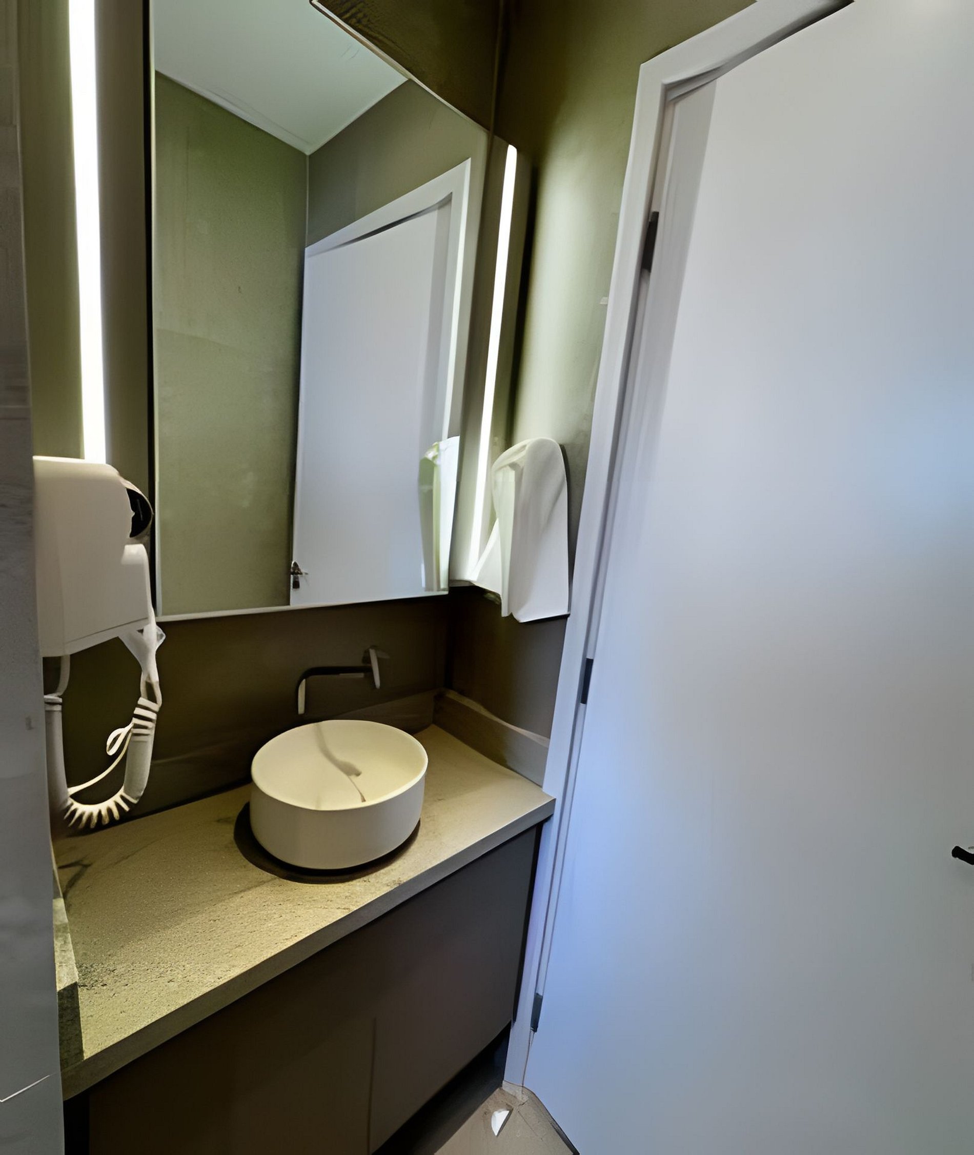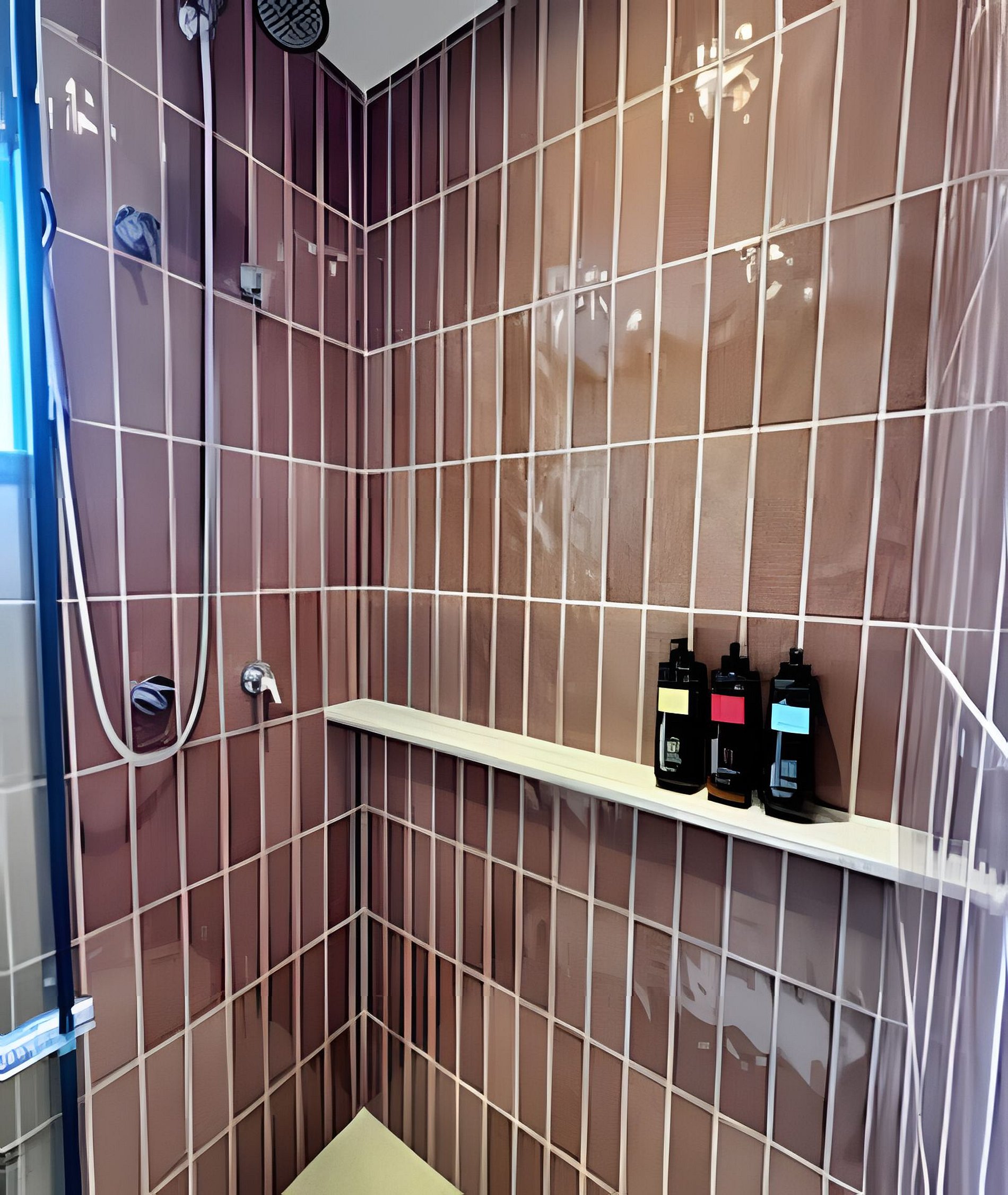 • Banheiro moderno com ducha potente, kit de higiene, toalha de banho e rosto