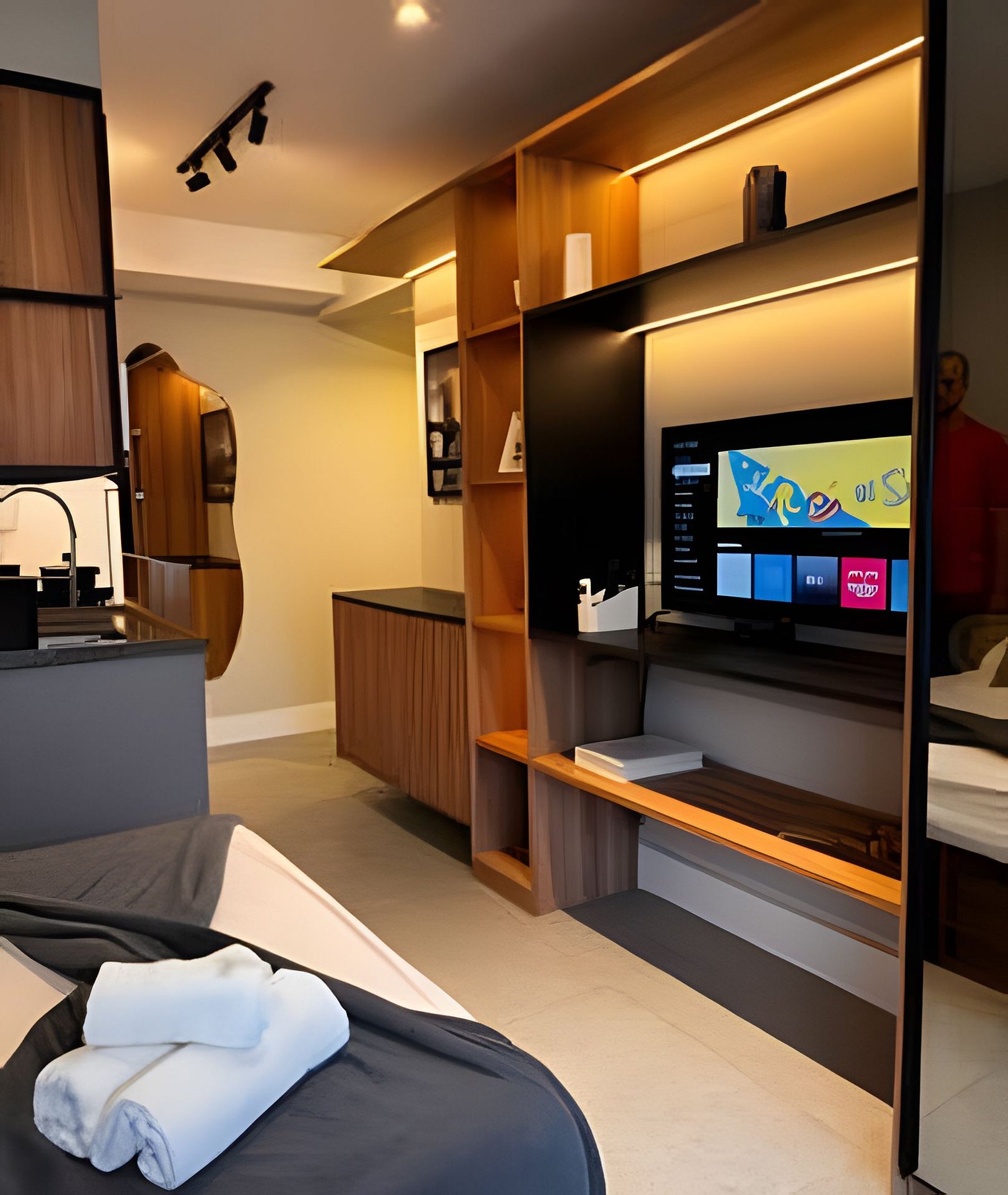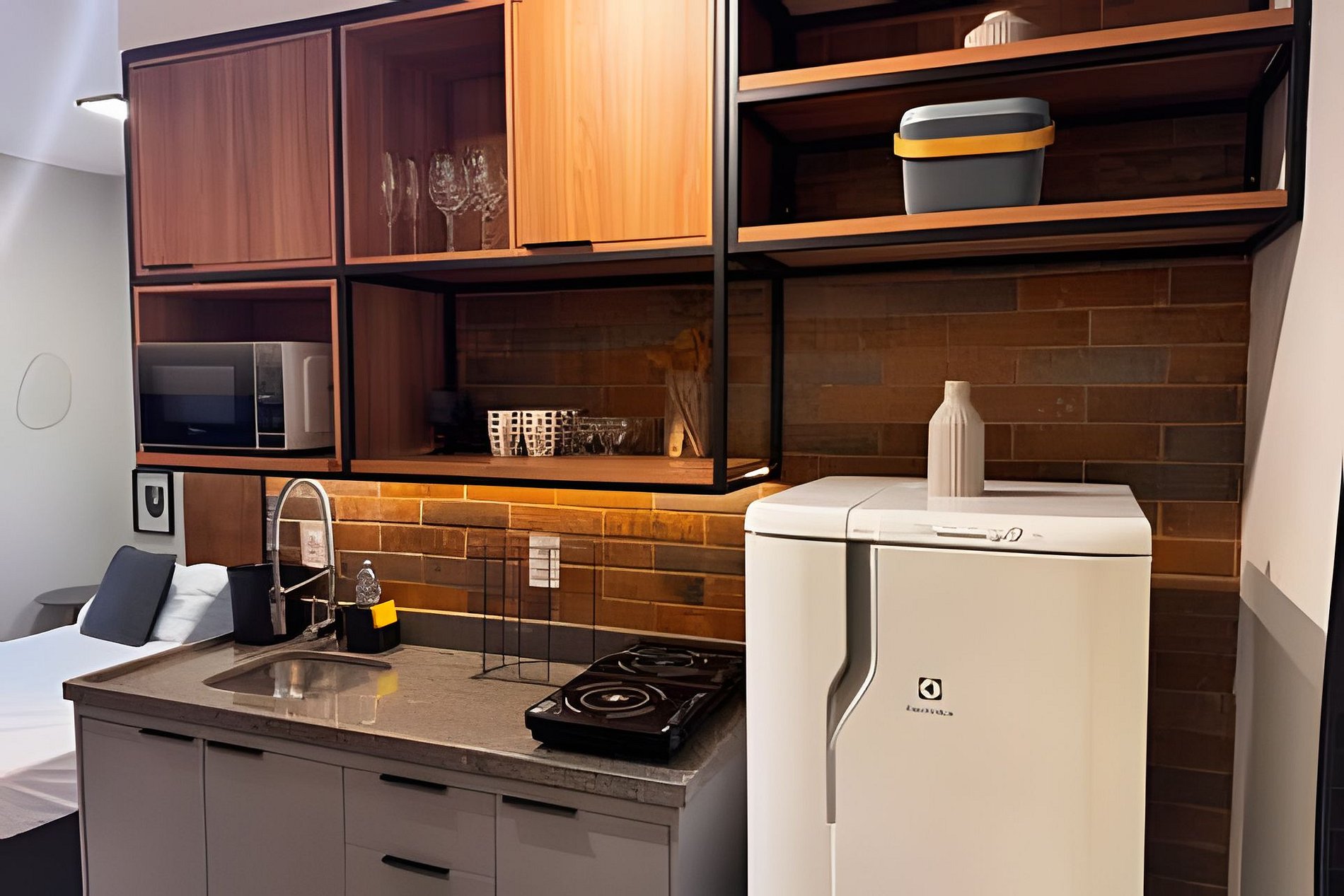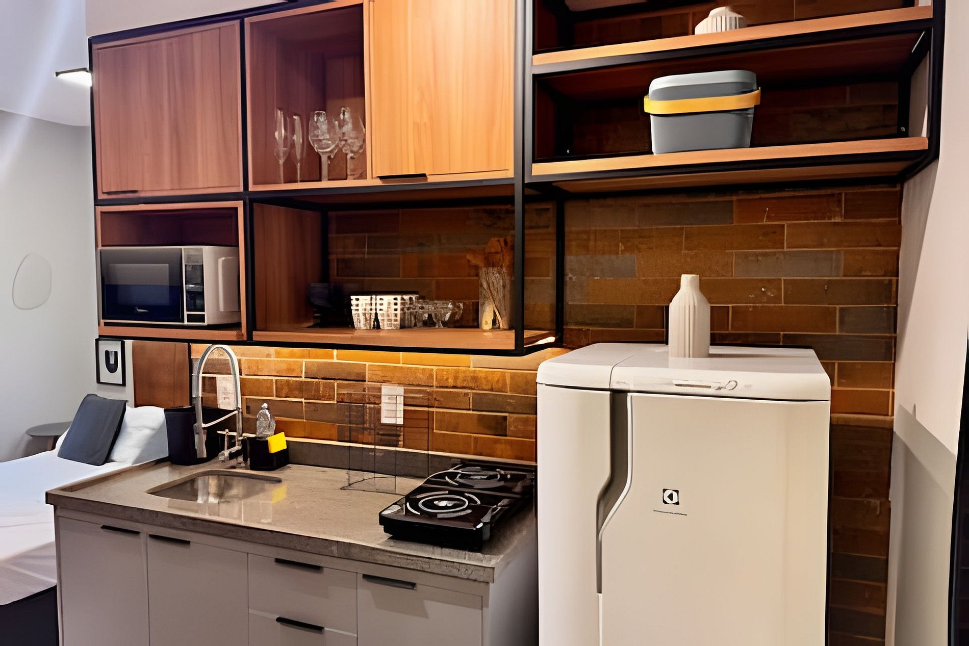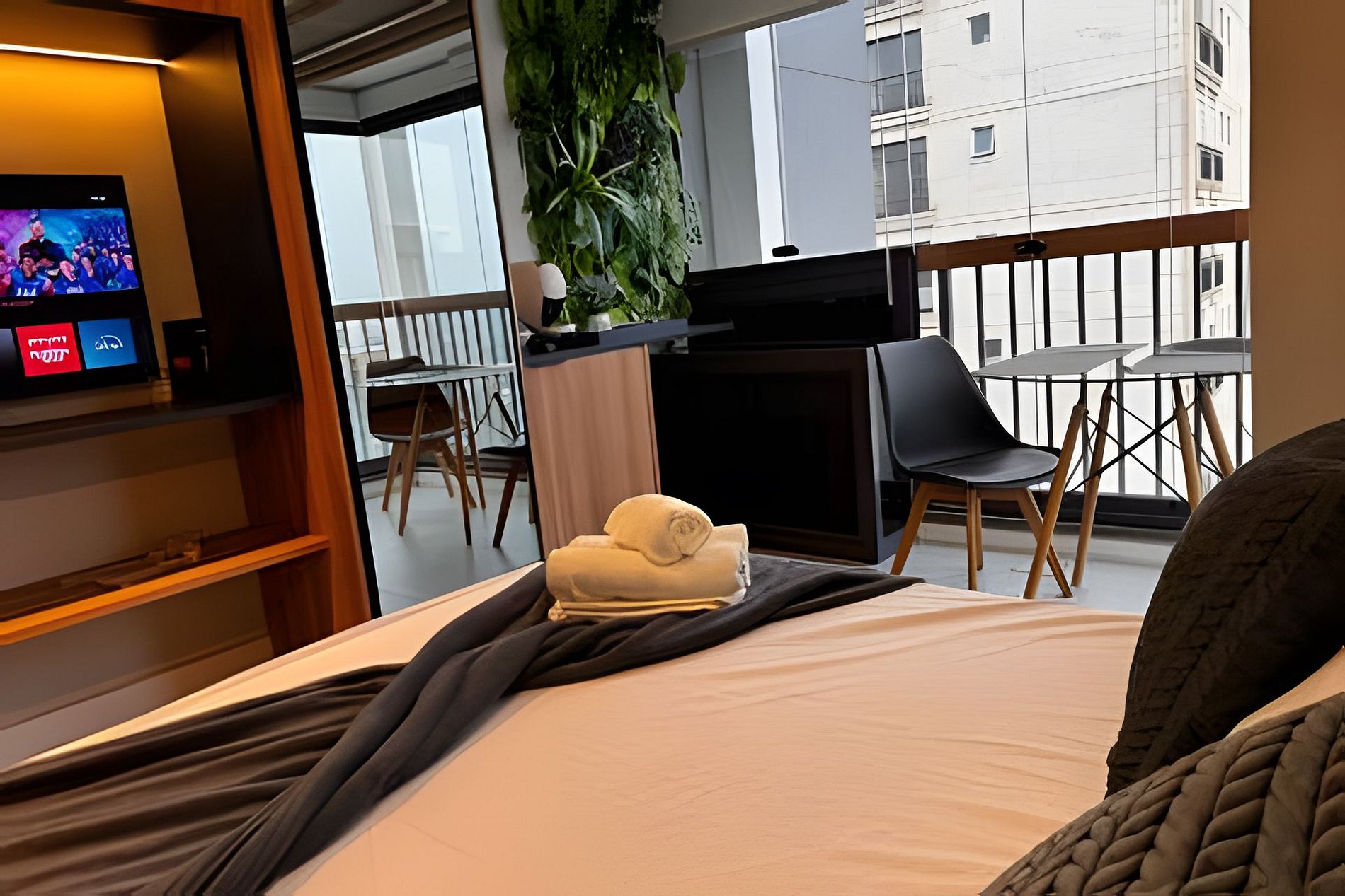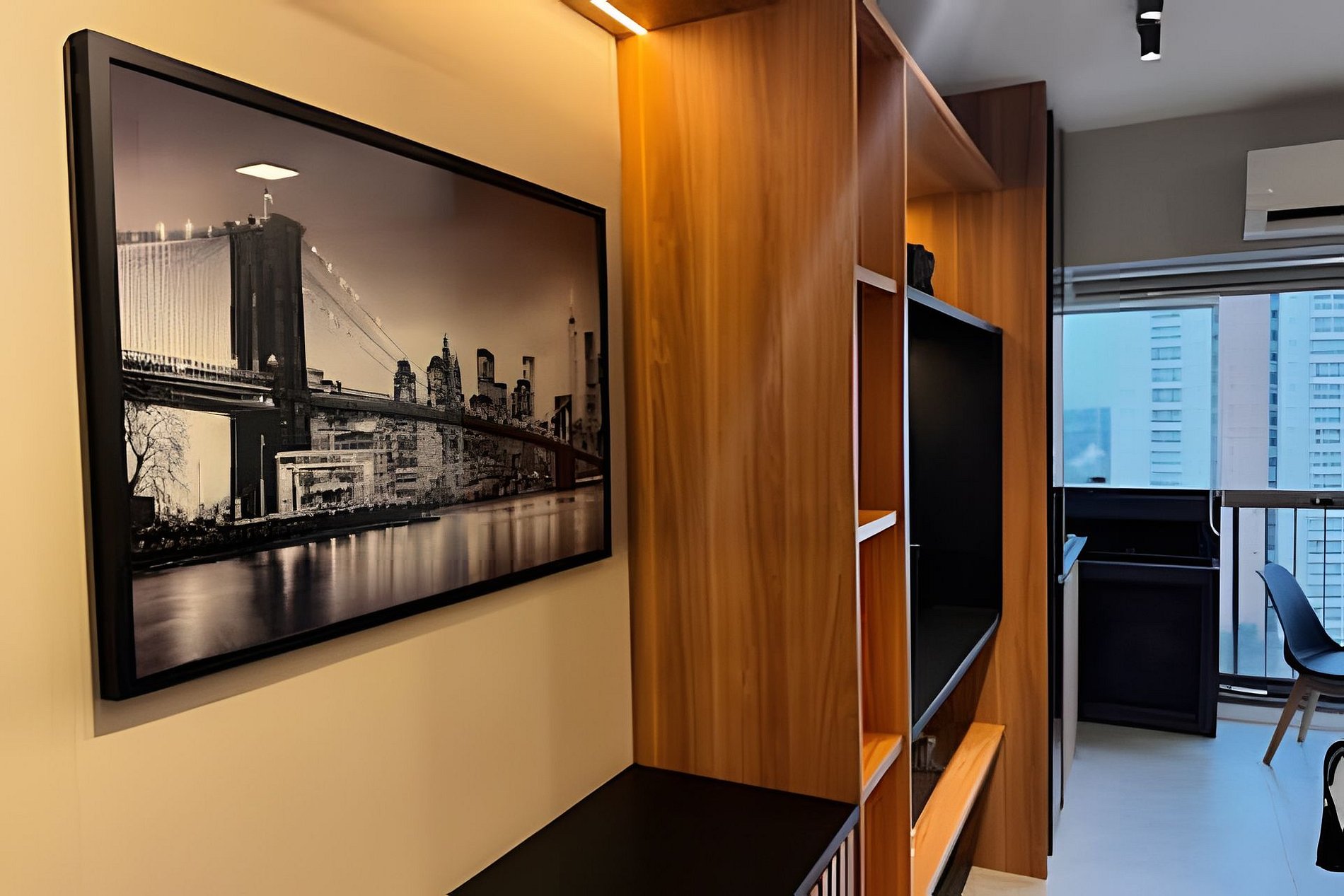 Apê moderno, completo e aconchegante no Brooklin. Acomoda até 2 pessoas, com cama de casal confortável, ar-condicionado e cozinha totalmente equipada, ideal para quem busca praticidade e conforto em São Paulo. O prédio conta com piscina na cobertura, academia, bicicletário e áreas comuns modernas. Localizado na Rua Eleutério, está próximo à Estação Brooklin do metrô, com fácil acesso às Avenidas Santo Amaro e Berrini, além de shoppings, bares, restaurantes e serviços da região.