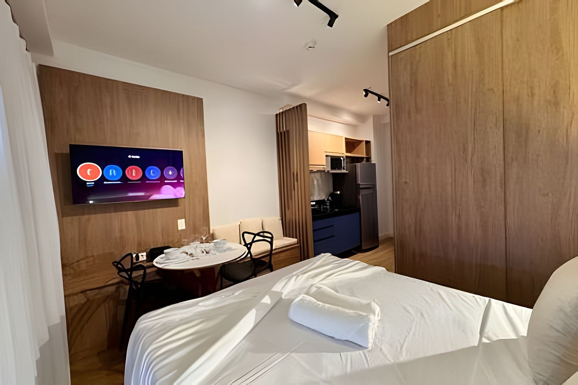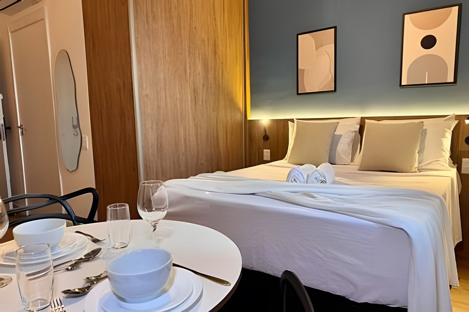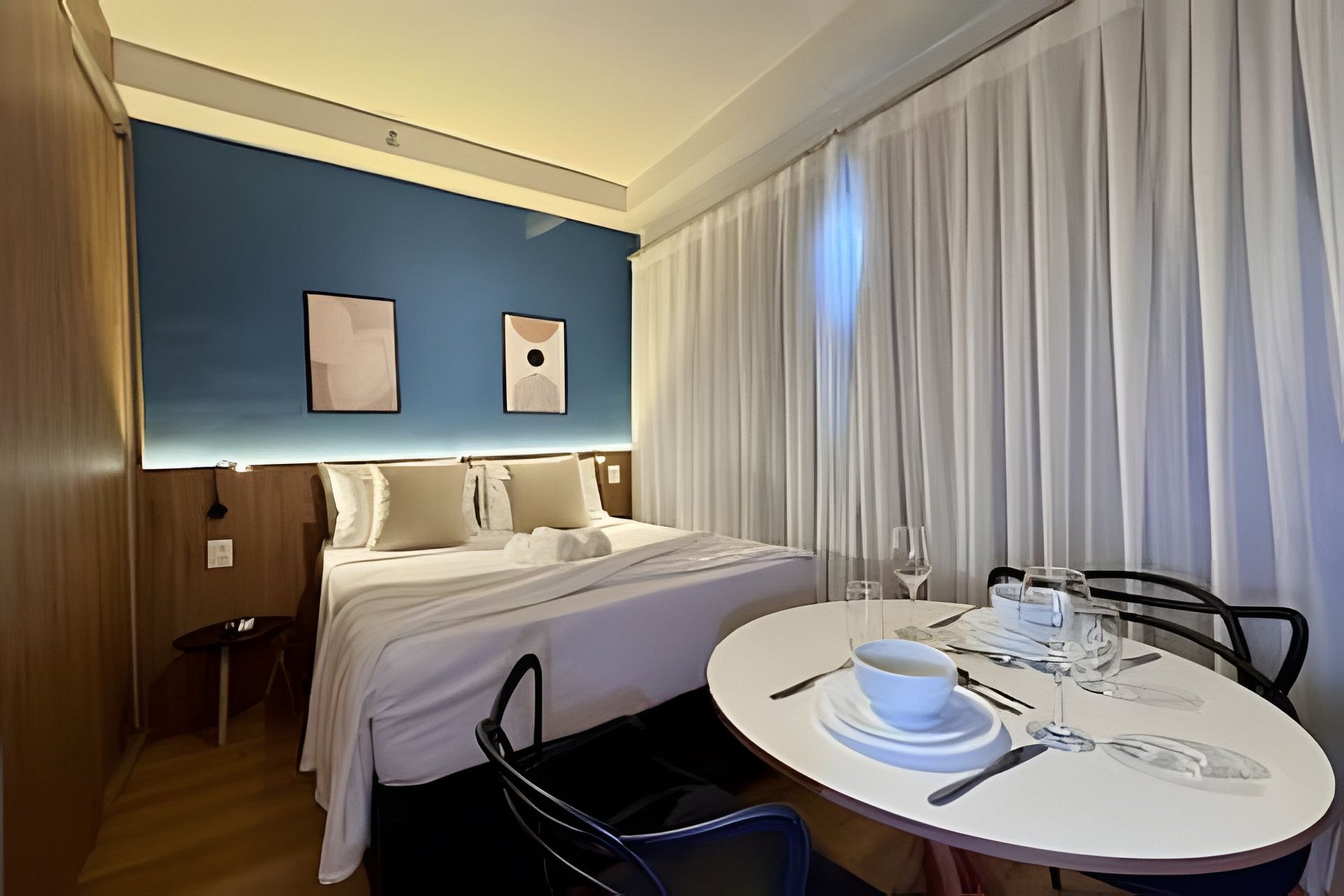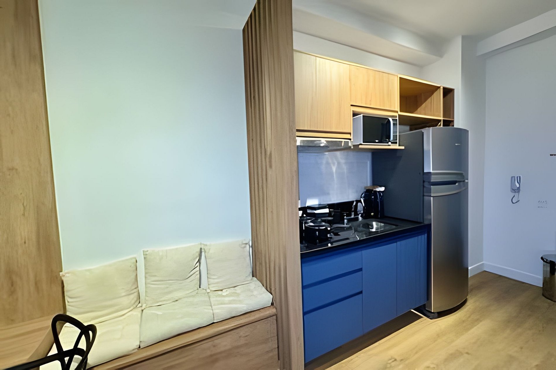 Os studios possuem aproximadamente 24m², com ambiente moderno, funcional e bem planejado, ideal para até 2 hóspedes — perfeito para casais, executivos ou viajantes que buscam conforto e praticidade em uma excelente localização.