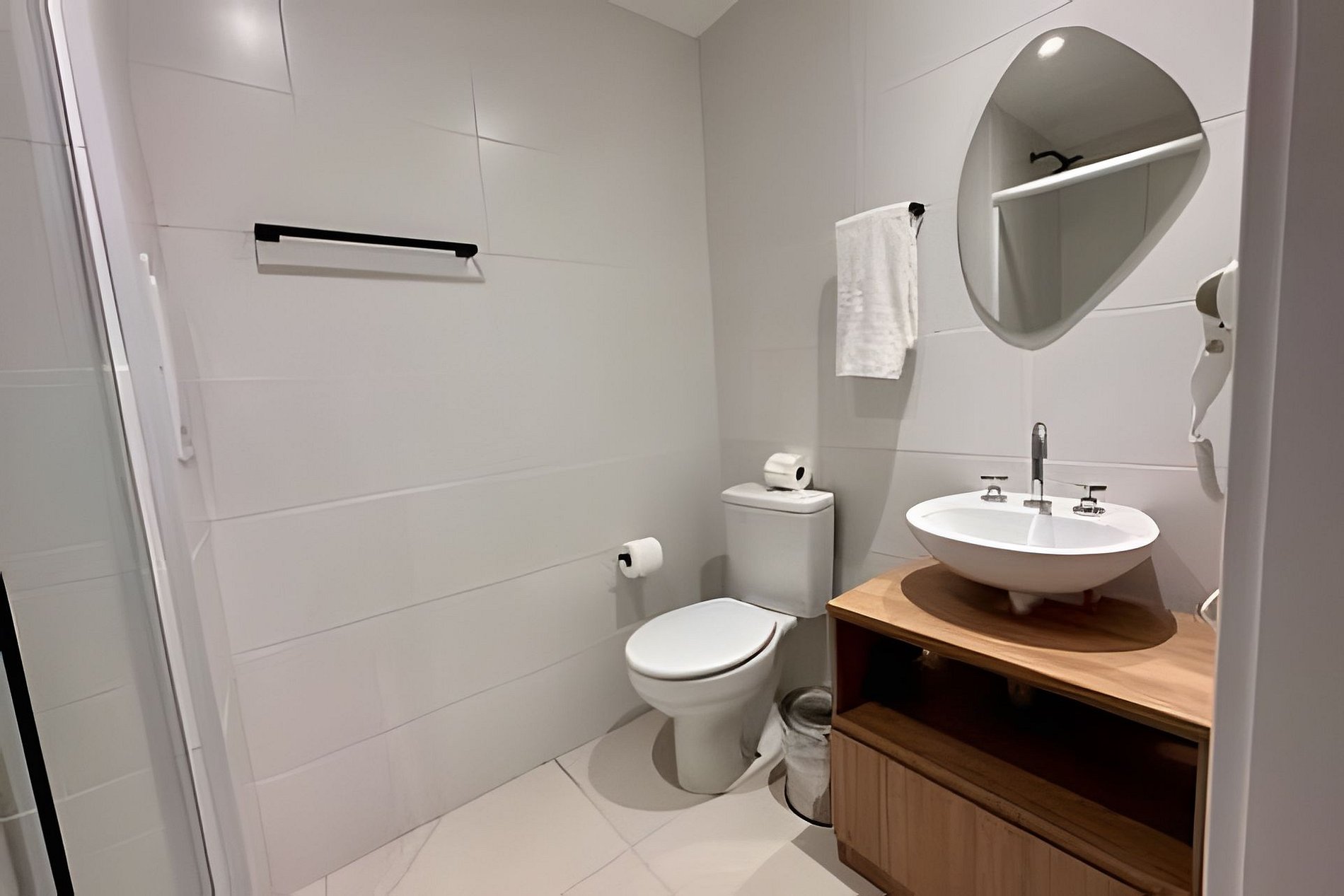 • Banheiro privativo com ducha quente, toalhas de banho e rosto, secador de cabelo e itens básicos de higiene