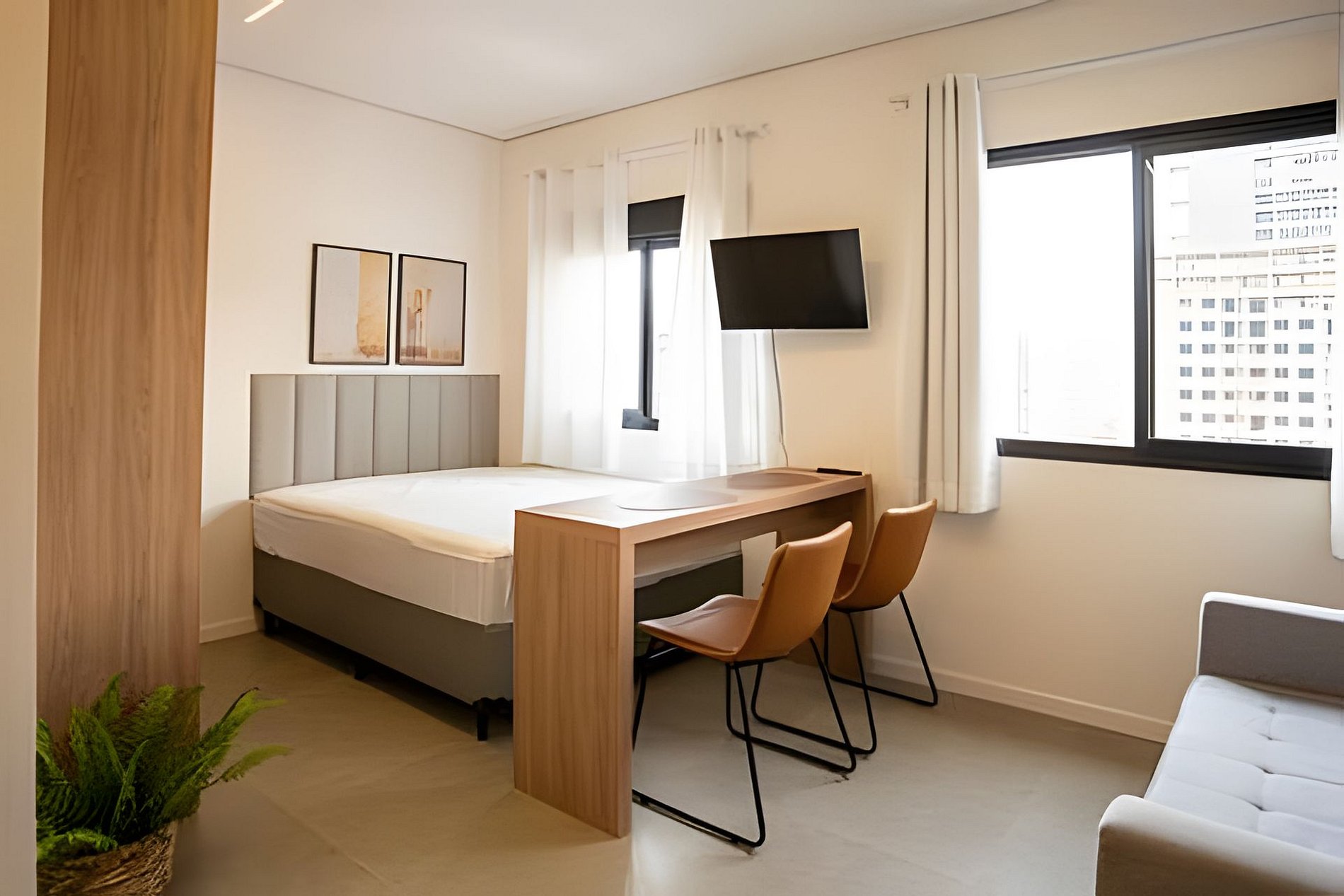 A unidade administrada por nossa equipe oferece ambiente prático, funcional e aconchegante — Perfeita para viajantes solo, casais, estudantes e profissionais em viagem de trabalho.